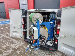 Vysokotlaké zařízení série HURAGAN se díky svým bezkonkurenčním rozměrům vejde i do malých dodávek Renault Traffic, Opel Vivaro či Volkswagen Transporter, což z něj činí nejkompaktnější stroj tohoto typu na trhu. Hydraulicky poháněný buben se naklání o 90° a otáčí o 180° pro optimální pracovní komfort.